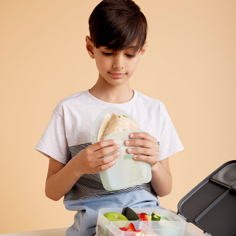 Niente più plastica monouso, grazie alla nostra tasca porta pranzo in silicone riutilizzabile! Ora è possibile confezionare un'ampia gamma di spuntini e pranzi salutari, da panini e sushi a bagel, involucri e altro ancora.